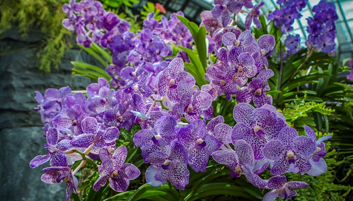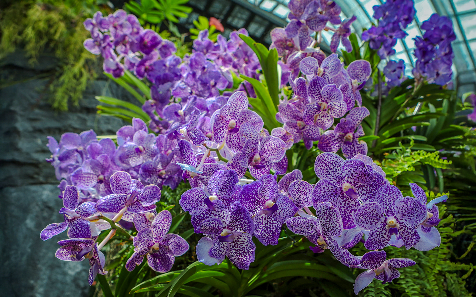 A refined indoor exhibition showcasing exotic orchids and anthuriums, with carefully staged arrangements highlighting colour, form, and cultivation techniques.
